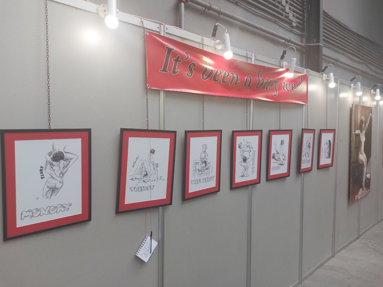 Το φεστιβάλ φροντίζει… να σε βάλει με το καλημέρα στο κλίμα της έκθεσης, αφού το πρώτο πράγμα που αντικρίζεις όταν μπαίνεις στον χώρο του Παλιού Αμαξοστασίου του ΟΣΥ είναι το περίπτερο του Sugar Babes, μιας από τις γνωστότερες εταιρείες παραγωγής πορνό στην Ελλάδα, που τα τελευταία χρόνια έχει κάνει άνοιγμα και στο εξωτερικό!