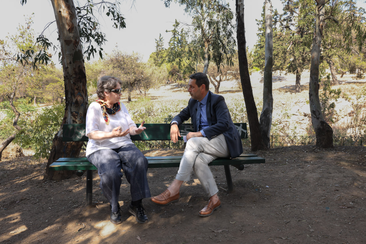 Η υποψήφια βουλευτής του ΚΚΕ στην Α΄ Αθηνών κ. Κωνσταντίνα Κούνεβα με τον δημοσιογράφο του in κ. Ανδρέα Παναγόπουλο