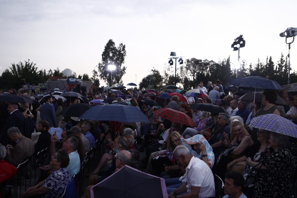 Πολλοί από τους παρευρισκόμενους κρατούσαν ομπρέλες αφού ο καιρός είναι άστατος.