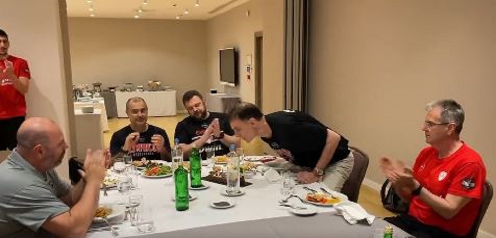Στον Ολυμπιακό πέρασαν τις τελευταίες ώρες πριν τον τρίτο τελικό απέναντι στον Παναθηναϊκό, γιορτάζοντας τα γενέθλια του Γιώργου Μπαρτζώκα.