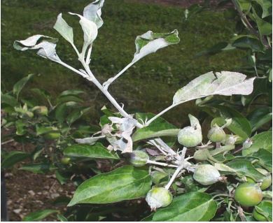 Προσβολή ωιδίου σε νεαρούς καρπούς και τρυφερή βλάστηση.