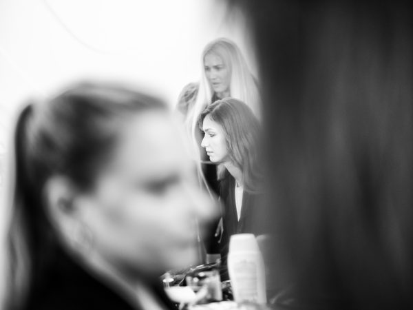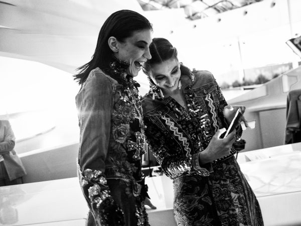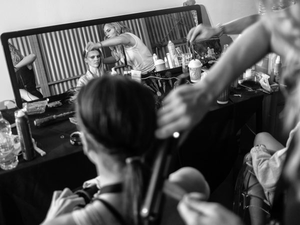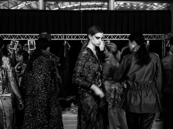 Το υπέροχο με τα παρασκήνια της μόδας είναι ότι όλοι κινούνται ανεξάρτητα, μεμονωμένα αλλά ταυτόχρονα για έναν κοινό σκοπό. Κάποιοι ποζάρουν σε επανάληψη για έξτρα λήψεις, πέρα από τις κλασικές της πασαρέλας, άλλοι βηματίζουν πάνω κάτω ή κυκλικά σαν αντιστρές μάντρα κινησιολογίας, όλοι, μα όλοι κοιτάζουν το κινητό τους.