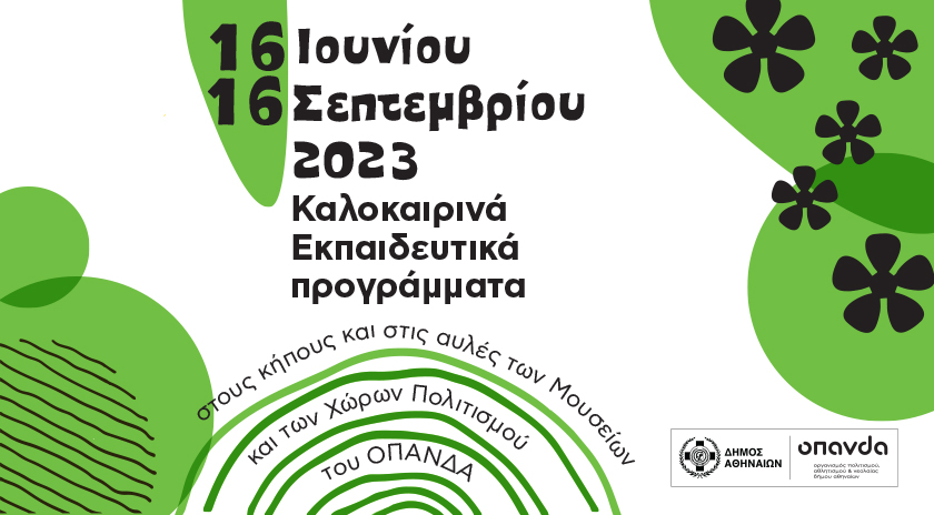 Οι πράσινοι κήποι και οι όμορφες αυλές των Μουσείων και των Χώρων Πολιτισμού της πόλης, υποδέχονται κι αυτό το καλοκαίρι τα παιδιά ηλικίας από 6 έως 12 ετών με τις οικογένειες τους, για να συμμετάσχουν σε μία σειρά εκπαιδευτικών προγραμμάτων που προσφέρει δωρεάν, από 16 Ιουνίου έως 16 Σεπτεμβρίου 2023, ο Δήμος Αθηναίων, μέσω του Οργανισμού Πολιτισμού, Αθλητισμού και Νεολαίας του Δήμου Αθηναίων (ΟΠΑΝΔΑ).