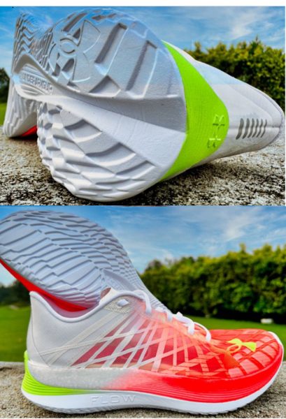 Με πλάκα ανθρακονήματος (carbon plate) πλήρους μήκους στην ενδιάμεση σόλα του, τοποθετημένη σε μαλακό αφρό ενδιάμεσης σόλας που συμπιέζεται και αναπηδά για επιπλέον προώθηση, προσφέρει εκπληκτική επιστροφή ενέργειας στον δρομέα ενώ η τεχνολογία UA FLOW προσδίδει αντικραδασμική προστασία και επιπλέον έκρηξη.