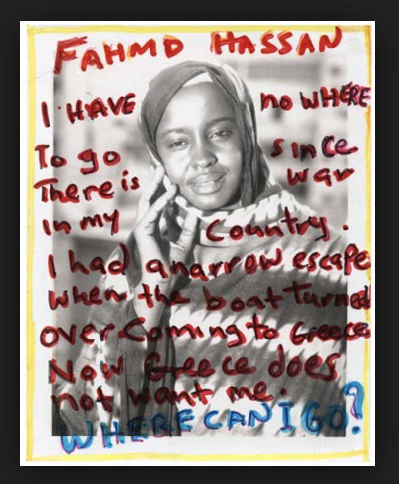«Δεν έχω πουθενά να πάω. Στη χώρα μου γίνεται πόλεμος. Την γλύτωσα φθηνά όταν η βάρκα στην οποία επέβαινα αναποδογύρισε στον δρόμο για την Ελλάδα. Σήμερα η Ελλάδα δεν με θέλει πια. Που να πάω;». Αυτά είναι τα λόγια της Fahmd Hassan σε ένα polaroid με την φωτογραφία της, έργο του φωτογράφου Τζιμ Γκόλντμπεργκ από το καλλιτεχνικό του εγχείρημα με τίτλο «Ανοιχτή Θάλασσα».