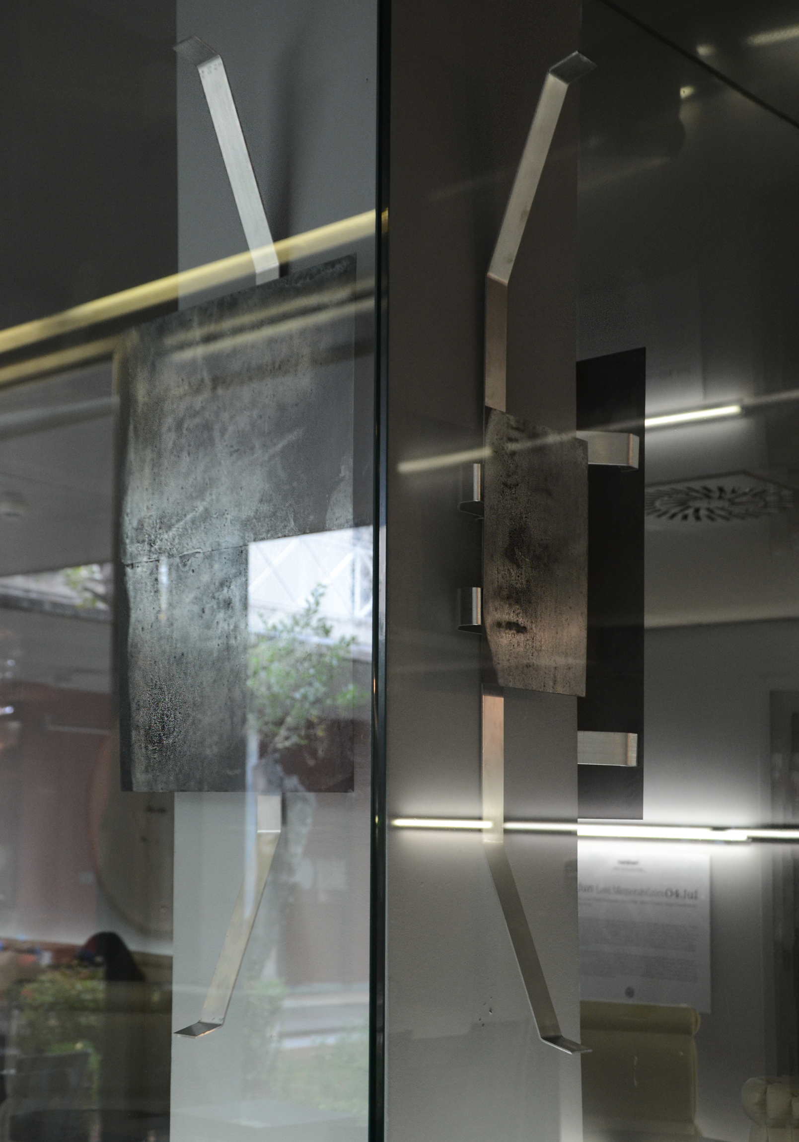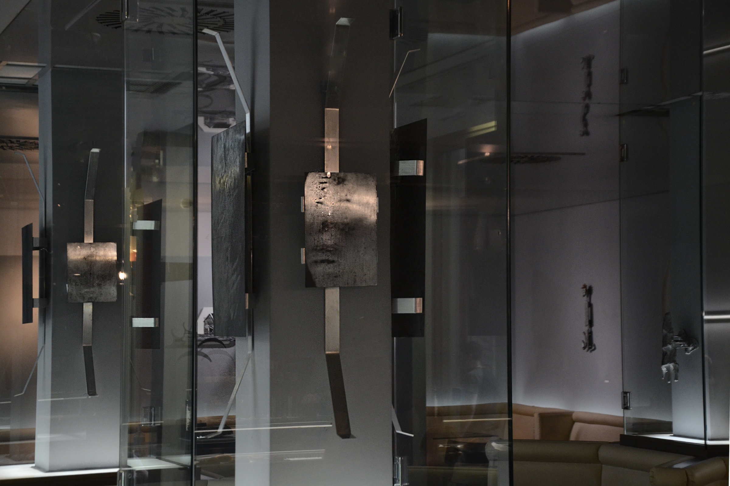 Το καφέ γίνεται κάψουλα, τόπος διάζευξης, χημείο μιας δράκας δημιουργών που τα έργα τους ταλαντεύονται ανάμεσα στη διαχρονική ωμότητα της πέτρας, του μετάλλου και στον αδυσώπητο διαμοιρασμό του «ορατού» από τις σύγχρονες υπολογιστικές μεγαδομές.