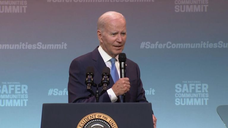 Ποικίλα σχόλια προκάλεσε στα μέσα κοινωνικής δικτύωσης η φράση «Ο Θεός να σώζει τη βασίλισσα» (God save the Queen) που χρησιμοποίησε ο πρόεδρος των ΗΠΑ Τζο Μπάιντεν, ολοκληρώνοντας χθες Παρασκευή ομιλία του για τον περιορισμό της οπλοκατοχής στο Κονέκτικατ (φωτογραφία, επάνω, από βίντεο με την ομιλία του).