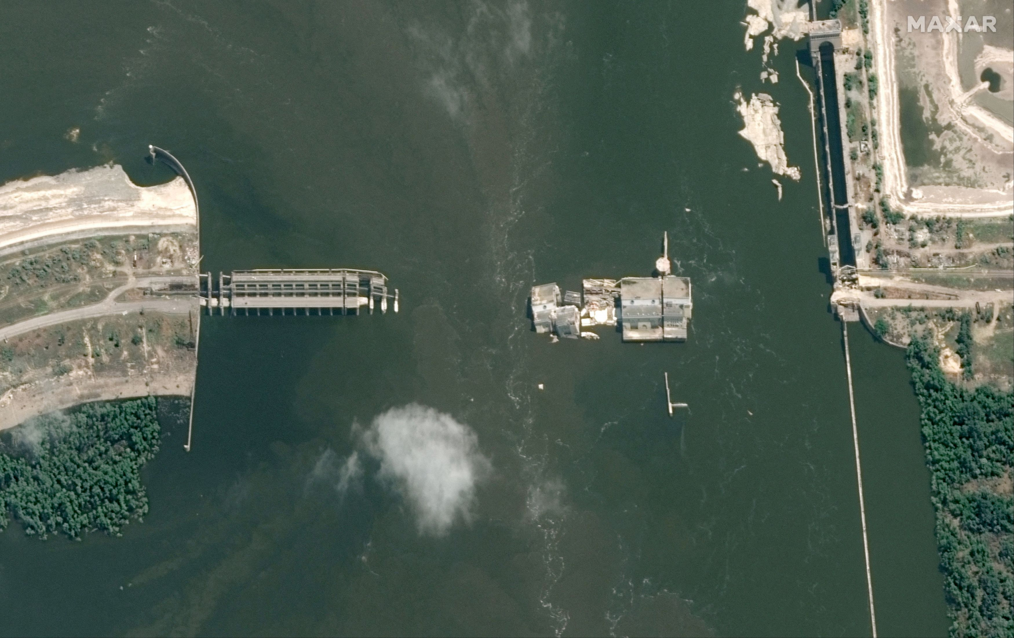 Η Ουκρανία κατηγορεί τη Ρωσία ότι ανατίναξε το σοβιετικής κατασκευής φράγμα που τελεί υπό ρωσικό έλεγχο από τις πρώτες μέρες της εισβολής της το 2022, με αποτέλεσμα χείμαρροι νερού να πλημμυρίσουν μεγάλο τμήμα του πεδίου της μάχης, καταστρέφοντας αγροτική γη και αποκόπτοντας την παροχή νερού στους πολίτες. Το Reuters δεν μπορεί να επιβεβαιώσει από ανεξάρτητη πηγή τους ισχυρισμούς για τις αιτίες της έκρηξης.