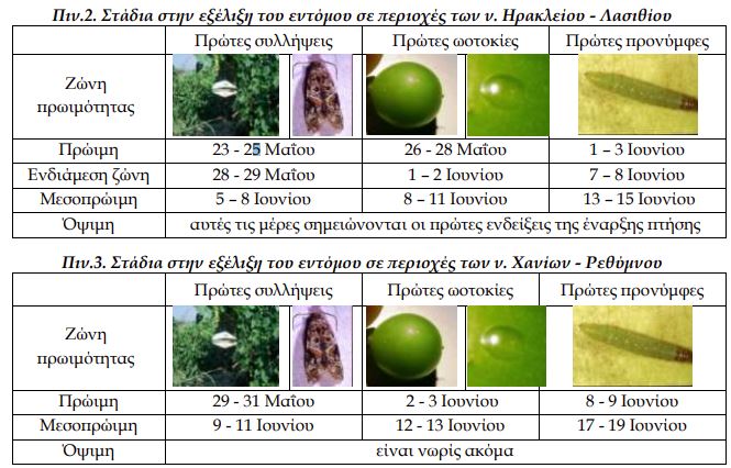 Οι χρόνοι έναρξης και τα στάδια εξέλιξης ανά ζώνη πρωιμότητας δίνονται παρακάτω (Πιν. 2, 3).