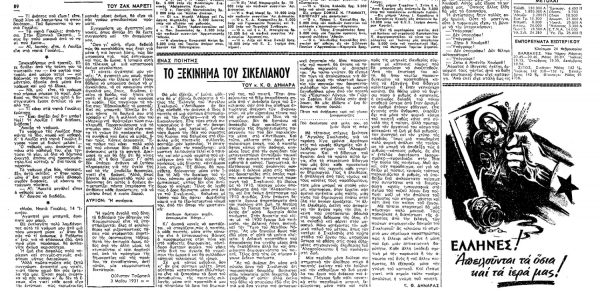*Άρθρο του Κ. Θ. Δημαρά για τον Άγγελο Σικελιανό, ειδικότερα δε για το ποιητικό του ξεκίνημα. Το κείμενο του Δημαρά, που έφερε τον τίτλο «Το ξεκίνημα του Σικελιανού», είχε δημοσιευτεί στην εφημερίδα «Ελεύθερον Βήμα» στις 26 Φεβρουαρίου 1943, μεσούντος του Β’ Παγκοσμίου Πολέμου και μεσούσης της Κατοχής.