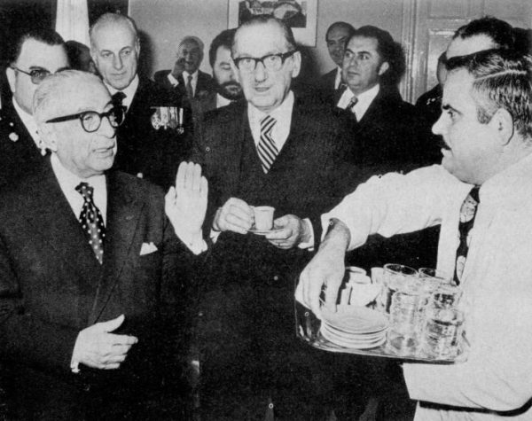 Ο πολιτικός ήταν φανερό πια πως είχε κατακτήσει και υποτάξει το φιλόσοφο, σχέση που είχε ποικιλοτρόπως σχολιαστεί και δεχτεί τα βέλη της δημοσιογραφικής σάτιρας, ιδίως των γελοιογράφων των εφημερίδων.