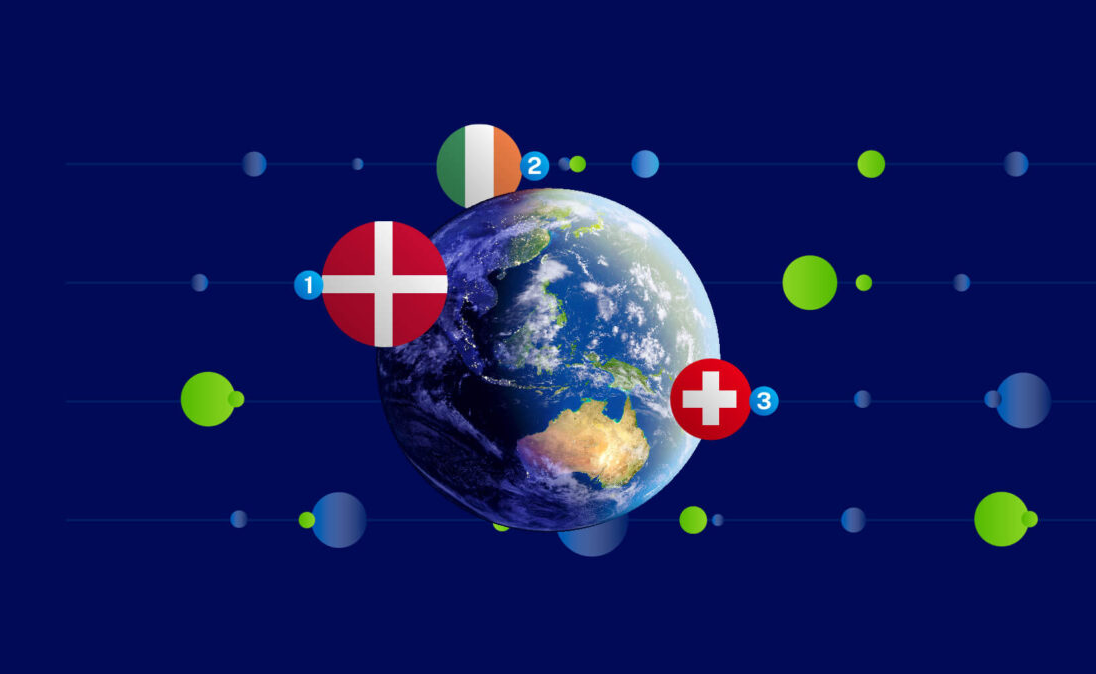 Η Δανία διατήρησε τη πρωτοκαθεδρία της στην πρώτη θέση από πέρυσι, όταν κινήθηκε στην κορυφή, η Ιρλανδία έκανε ένα αξιοσημείωτο άλμα από την 11η θέση για να βρεθεί στη δεύτερη και η Ελβετία διατήρησε την τρίτη θέση αφού υποχώρησε από τη δεύτερη θέση το 2022 και από την πρώτη θέση το 2021. Και οι τρεις είναι μικρές αναλογικά οικονομίες που κάνουν καλή χρήση της πρόσβασής τους στις αγορές και στους εμπορικούς εταίρους – όπως και η Σιγκαπούρη, η οποία ήρθε τέταρτη στην τελική κατάταξη.