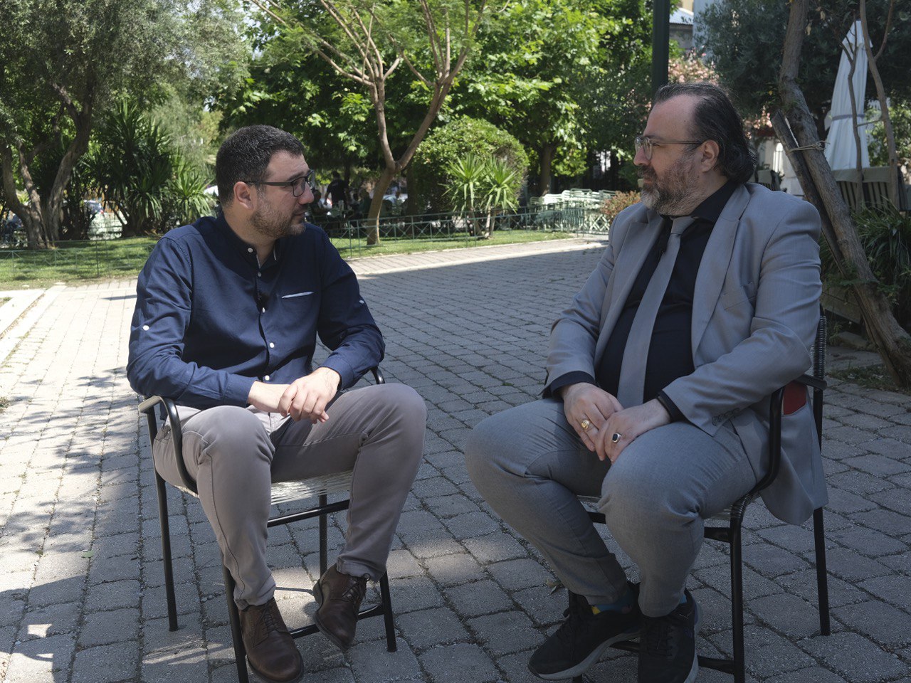 Ο υποψήφιος βουλευτής του ΣΥΡΙΖA στην Α’ Αθηνών κ. Νάσος Ηλιόπουλος με τον δημοσιογράφο του in κ. Δημήτρη Μανιάτη