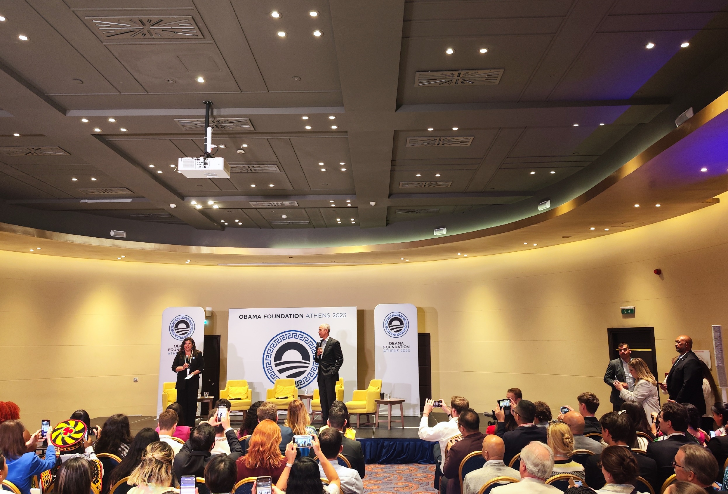Σε μία κατάμεστη αίθουσα στο ξενοδοχείο Wyndham Grand Athens που βρίσκεται στο κέντρο της Αθήνας, ο Μπαράκ Ομπάμα απέσπασε το θερμό χειροκρότημα των παρευρισκόμενων, μιλώντας για το πόσο ανυπόμονος είναι να δει όλους όσους έδωσαν το «παρών» να αλλάζουν τον κόσμο. «Είμαι πιο ενθουσιασμένος για τις προοπτικές, σε συνδυασμό με όσα κάνετε ατομικά, να δημιουργήσετε διασυνδέσεις που θα κρατήσουν σε όλη την καριέρα σας, πέρα από τα σύνορα, πέρα από τις ηπείρους».