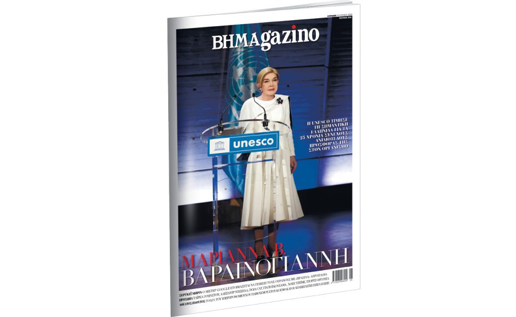 Το «BHMAGAZINO» που κυκλοφορεί όπως πάντα με «ΤΟ ΒΗΜΑ ΤΗΣ ΚΥΡΙΑΚΗΣ» φιλοξενεί στο εξώφυλλό του τη Μαριάννα Β. Βαρδινογιάννη. Η σημαντική Ελληνίδα βραβεύτηκε από την UNESCO για τα 25 χρόνια προσφοράς της στον Πολιτισμό και τον άνθρωπο. Μία προσωπικότητα γνωστή διεθνώς για το μεγάλο φιλανθρωπικό της έργο.
