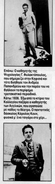 Κάθε τάξη που τελείωνε το Κολλέγιο έβγαζε ένα λεύκωμα. Τον «Θησαυρό». Φωτογραφίες, αναμνήσεις, σχόλια… Έχουμε μπροστά μας το λεύκωμα του 1938 και το ξεφυλλίζουμε με τον αρχισυντάκτη του, που δεν είναι άλλος από το συνομιλητή μας, τον κ. Μυλωνά. Στις φωτογραφίες των δασκάλων, κι αυτή του δασκάλου των Αγγλικών. Του Κάρολου Κουν. […]