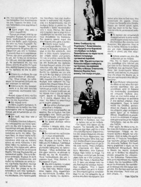 Ο Ανδρέας ήταν ένα άνθρωπος που ενδιαφερόταν για πολλά πράγματα και έξω από το σχολείο, ίσως περισσότερο από μας. Δεν έδινε την εντύπωση ότι ανήκε τόσο πολύ στην οικογένεια αυτής της τάξης. Όχι, προς Θεού, ότι έκανε τίποτα το δυσάρεστο ή αντιπαθητικό προς την οικογένεια, αλλά είχε και πολλούς φίλους και εκτός Κολλεγίου ή από άλλες τάξεις του σχολείου μας. Νομίζω πως, όταν είχαμε ματς, μάλλον δεν ερχόταν. Μιλούσε για κοινωνικά θέματα. Τότε είχε δημιουργηθεί μια τροτσκιστική ομάδα. Όλα αυτά δείχνουν ανησυχίες. Θυμάμαι ότι αυτή η ομάδα, που αποτελούνταν από παιδιά του Κολλεγίου και εκτός αυτού, είχε βγάλει περιοδικό, που είχε χαρακτηριστεί τροτσκιστικών τάσεων. Εγώ δεν μπορώ να πω ότι καταλάβαινα γιατί ήταν τροτσκιστικό ή όχι. Ήταν ένα περιοδικό υπέρ της ελευθερίας. Στην προετοιμασία του περιοδικού τούς είχε συμβουλεύσει ο καθηγητής της Ψυχολογίας, ο κ. Φυλακτόπουλος, που στη συνέχεια βρήκε τον μπελά του. Τον περιέλαβε η «Εστία» και καταλαβαίνετε τι έγινε. Πάντως, δεν έφυγε από το σχολείο, έμεινε μέχρι τη συνταξιοδότησή του και ήταν ένας από τους στυλοβάτες του Κολλεγίου.