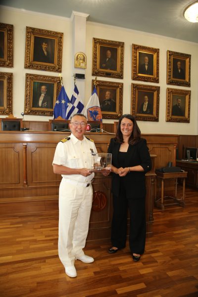 Εθιμοτυπική επίσκεψη, στο δημαρχείο Πειραιά, πραγματοποίησε ο Διοικητής του εκπαιδευτικού πλοίου «KOJIMA» της Ιαπωνικής Ακτοφυλακής, που βρίσκεται στο λιμάνι του Πειραιά, πλοίαρχος Kuniaki Takahashi.