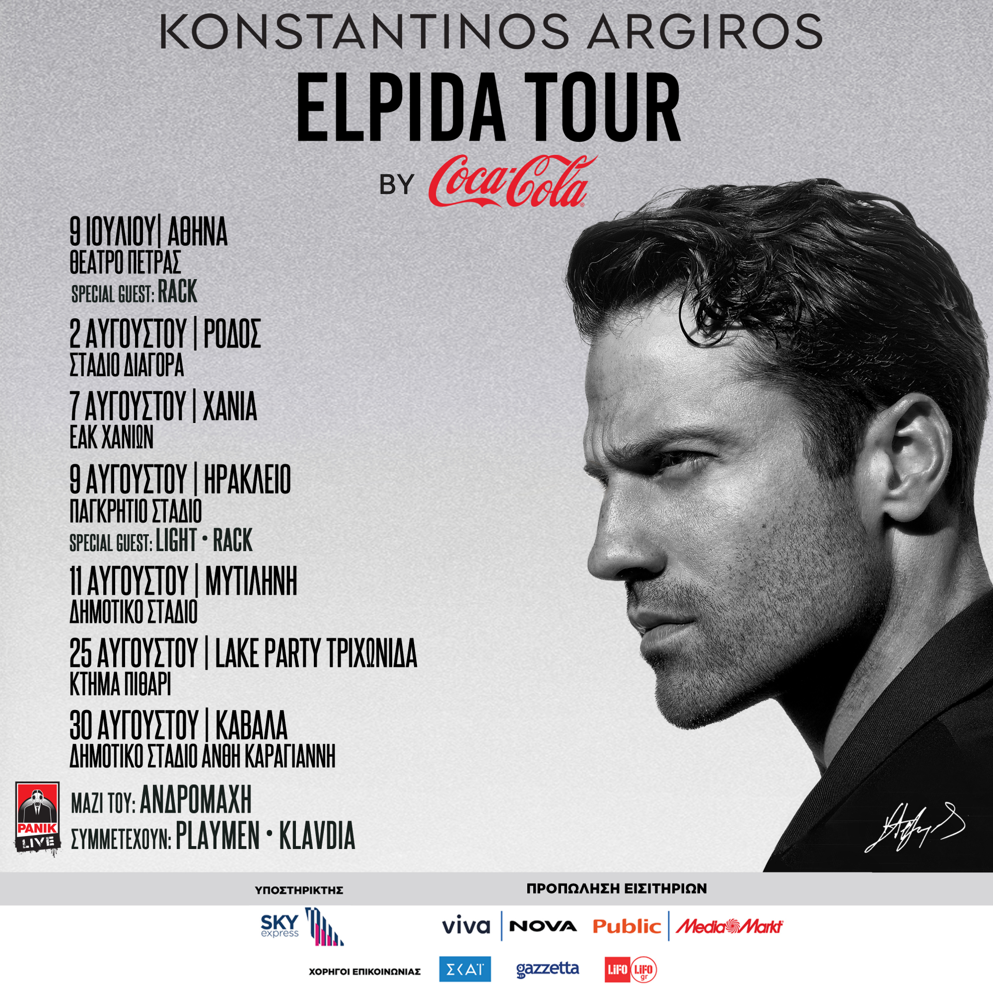 Επόμενοι σταθμοί του «Elpida Tour by Coca-Cola» είναι η Κομοτηνή (24 Ιουνίου), η Πάτρα (29 Ιουνίου) και τα Ιωάννινα (7 Ιουλίου), ενώ στις 9 Ιουλίου ο Κωνσταντίνος Αργυρός θα δώσει συναυλία στην Αθήνα (θέατρο Πέτρας).