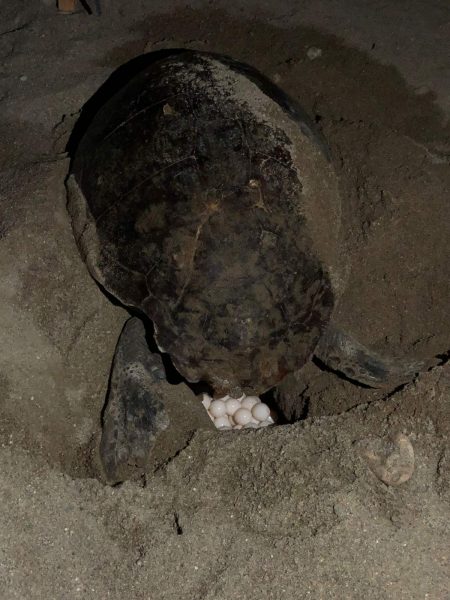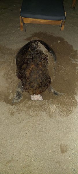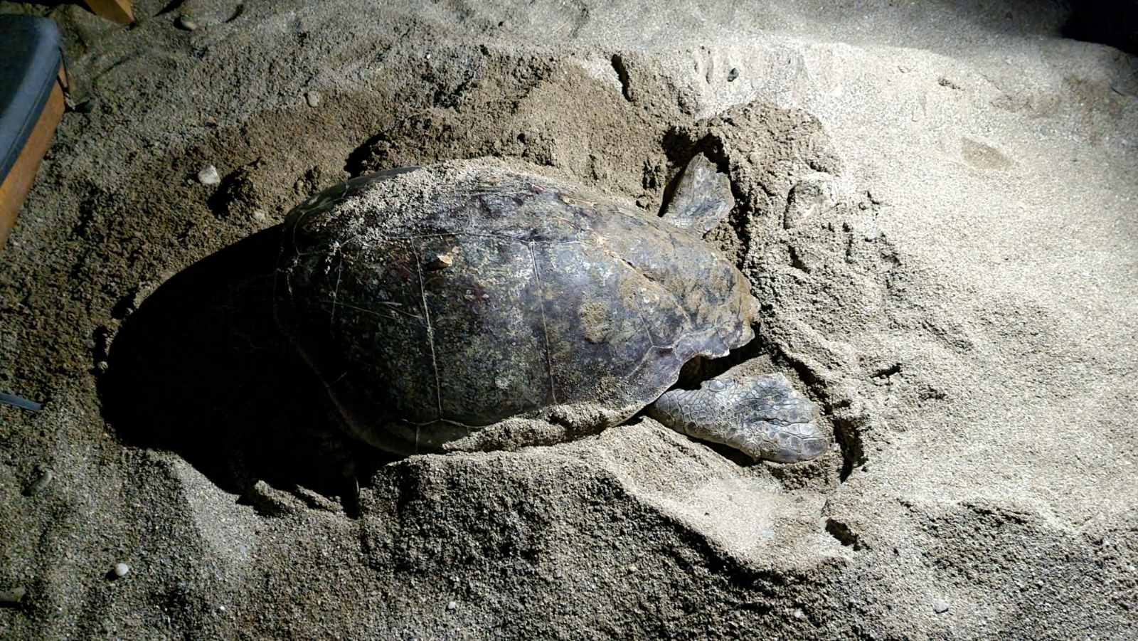 Το ερπετό βγήκε από τη θάλασσα και αφού διέσχισε μόλις μερικά μέτρα από εκεί που σκάει το κύμα, προσπάθησε να επιλέξει το σημείο ώστε να ξεκινήσει τη διαδικασία της ωοτοκίας.