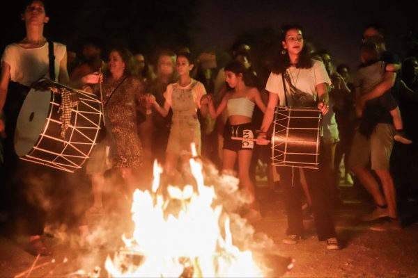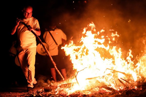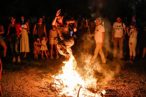 Άνδρες και γυναίκες πηδούν πάνω από τις φωτιές και φωνάζουν: «Να πηδήξω τη φωθιά, μη με πιάσει η αρρωστιά».