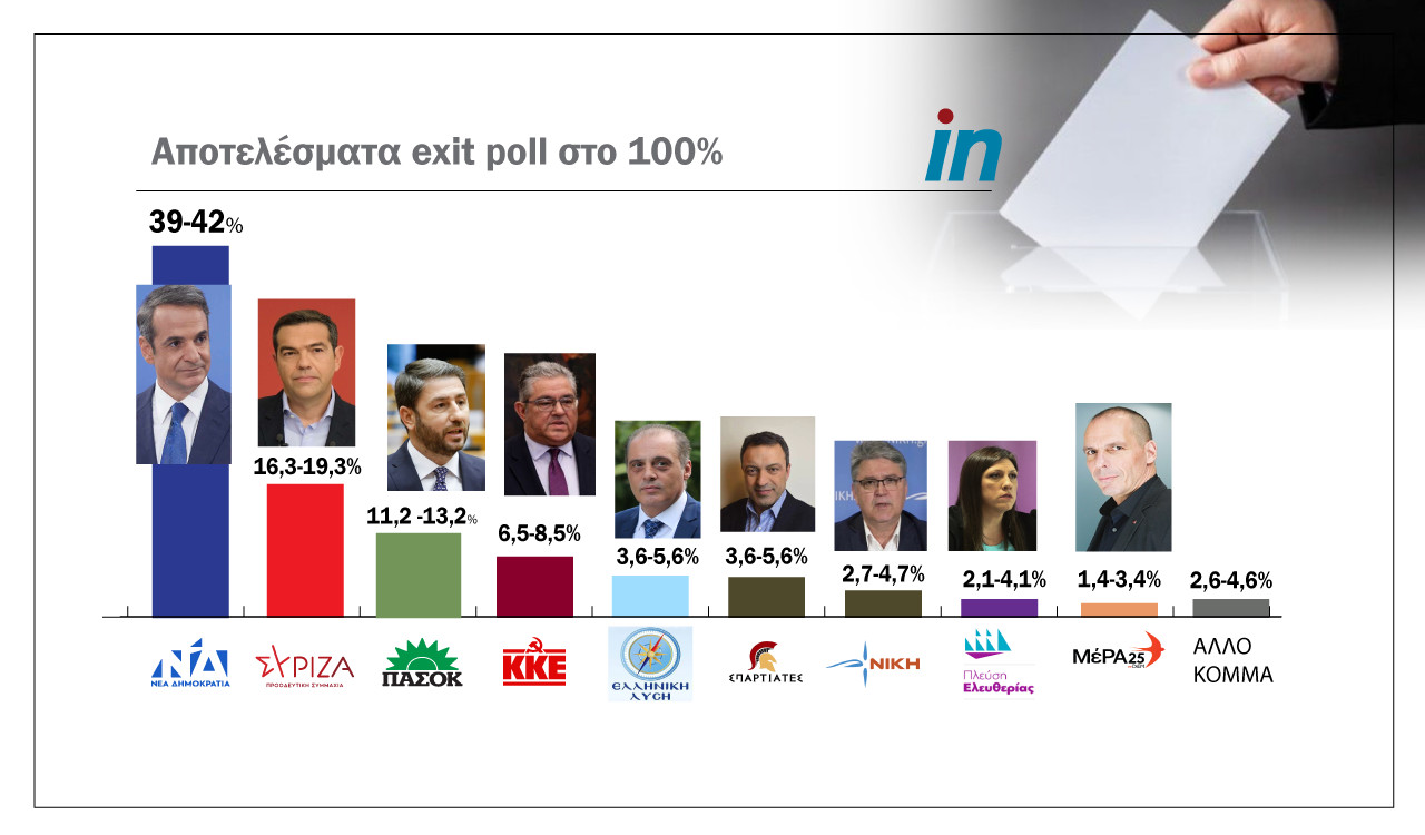 Σύμφωνα με την ανάλυση του exit poll η ΝΔ λαμβάνει 158 έδρες, ο ΣΥΡΙΖΑ 47, το ΠΑΣΟΚ 33, το ΚΚΕ 20, η Ελληνική Λύση 12, οι Σπαρτιάτες 12, η Νίκη 10 και η Πλεύση Ελευθερίας 8 έδρες.