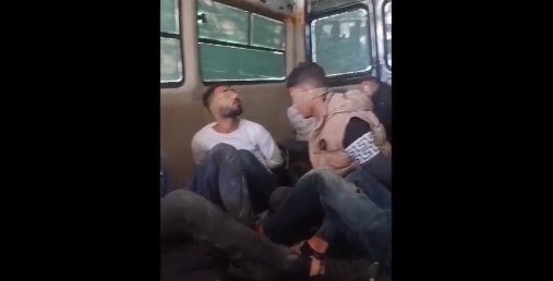 Το βίντεο δείχνει μια ομάδα ατόμων, πιθανότατα μετανάστες όπως αναφέρει η Aegean Boat Report, να είναι δεμένοι μέσα σε ένα βαν ενώ τα μάτια τους είναι δεμένα με κολλητική ταινία.