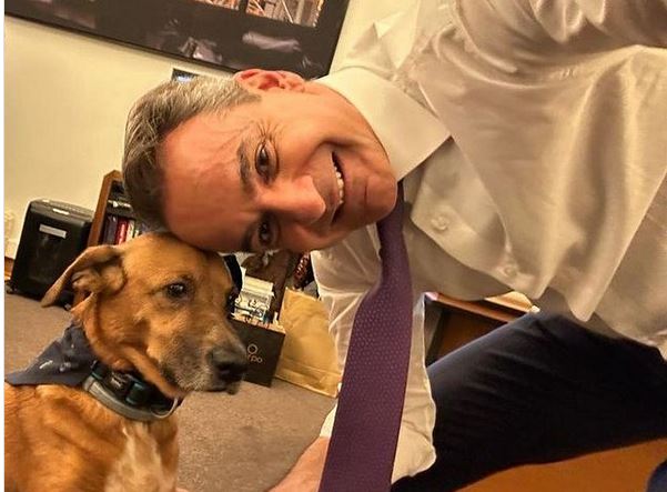 «Επιστροφή στο Μαξίμου μαζί με τον Peanut» έγραψε ο πρωθυπουργός στο Instagram, ανεβάζοντας και μία selfie με τον Peanut.