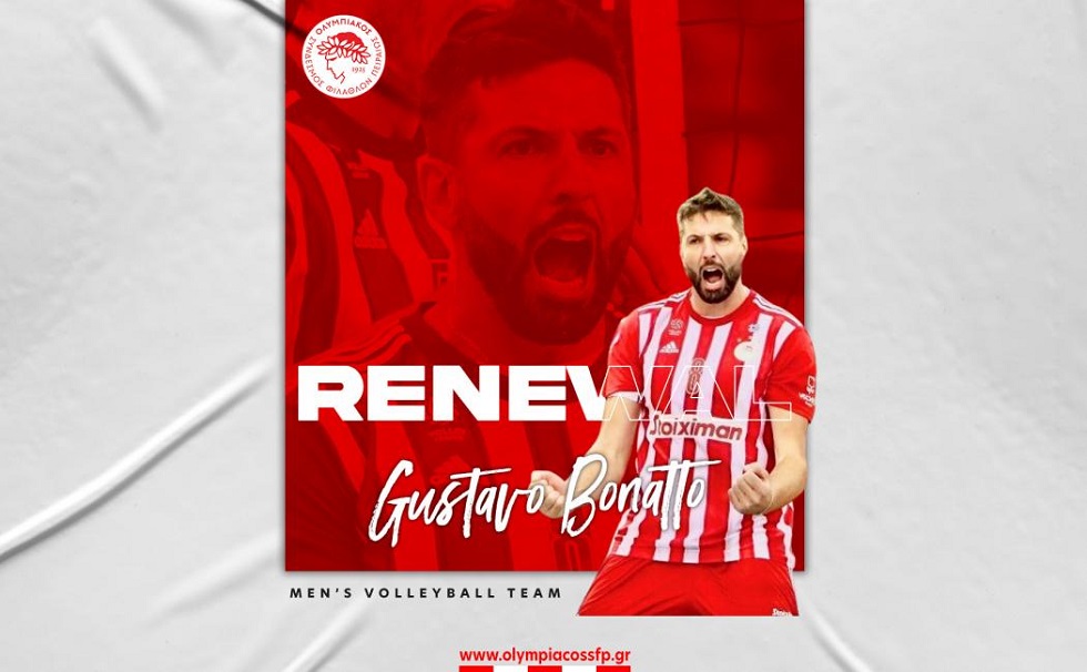 «Ο ΟΛΥΜΠΙΑΚΟΣ Σ.Φ.Π. ανακοινώνει την ανανέωση της συνεργασίας του με τον Γκουστάβο Γκουαζέλι Μπονάτο (Γκουσταβάο). Ο Βραζιλιάνος κεντρικός υπέγραψε το νέο του συμβόλαιο και παραμένει στο ρόστερ της ομάδας βόλεϊ Ανδρών του συλλόγου».