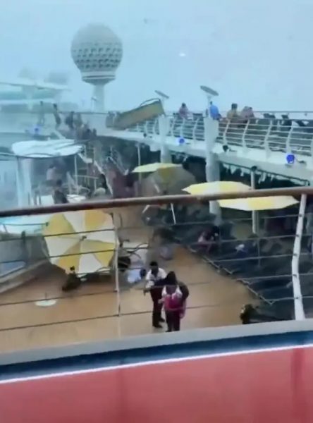 Καρέκλες και τραπέζια «πετούσαν» στο κατάστρωμα κρουαζιερόπλοιου και επιβάτες ούρλιαζαν και προσπαθούσαν να γλιτώσουν από την καταστροφή όταν μια ξαφνική και σφοδρή καταιγίδα έκανε την εμφάνισή της.