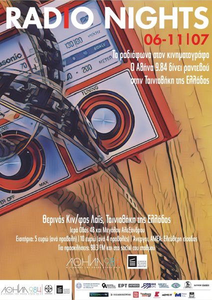Ο Αθήνα 9.84 και η Ταινιοθήκη της Ελλάδος παρουσιάζουν στην ταράτσα του Θερινού Κινηματογράφου Λαΐς το εξαήμερο αφιέρωμα RADIO NIGHTS, με ταινίες που ανέδειξαν τη δύναμη και την επίδραση του αγαπημένου μας μέσου.