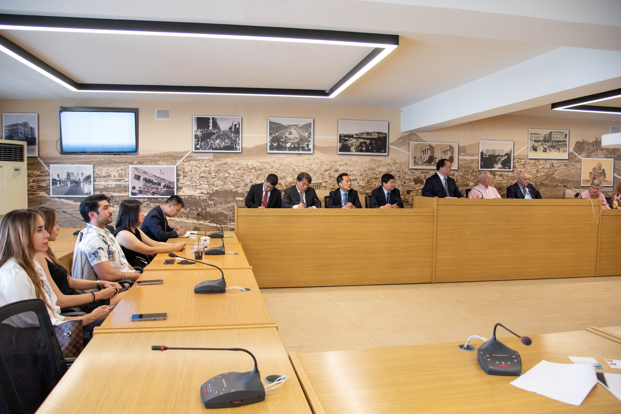 Ο Δήμαρχος Νέας Σμύρνης Σταύρος Τζουλάκης και στελέχη του Δήμου υποδέχτηκαν θερμά την αποστολή και ο Αντιδήμαρχος Τεχνικών Έργων Γιώργος Λαρίσσης ανέπτυξε τους πιθανούς τομείς συνεργασίας των δύο πόλεων (οικονομικό, πολιτιστικό, εμπορικό). Ακολούθως, ο Πρόεδρος του Εμπορικού Επιμελητηρίου Γιώργος Ασημάκος παρουσίασε μαζί με επιτυχημένους επιχειρηματίες της Νέας Σμύρνης τα πλεονεκτήματα της πόλης στον επιχειρηματικό τομέα ενώ ο Επίτιμος Πρόεδρος του Ελληνο – κινεζικού Επιμελητηρίου Φώτης Προβατάς ανέλυσε τρόπους ανάληψης πρωτοβουλιών που θα οδηγήσουν σε μια συνεργασία με προοπτικές.