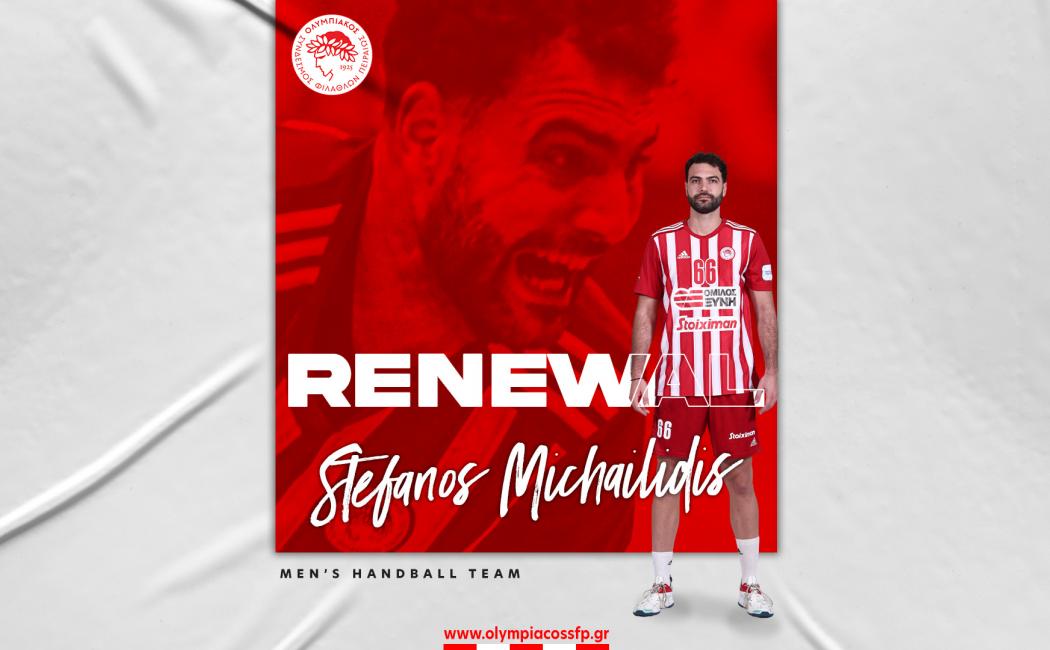 Άλλη μια ανανέωση ανακοίνωσε το τμήμα χάντμπολ του Ολυμπιακού, αφού ο διεθνής πίβοτ Στέφανος Μιχαηλίδης συνεχίζει και του χρόνου να αγωνίζεται με τα ερυθρόλευκα.