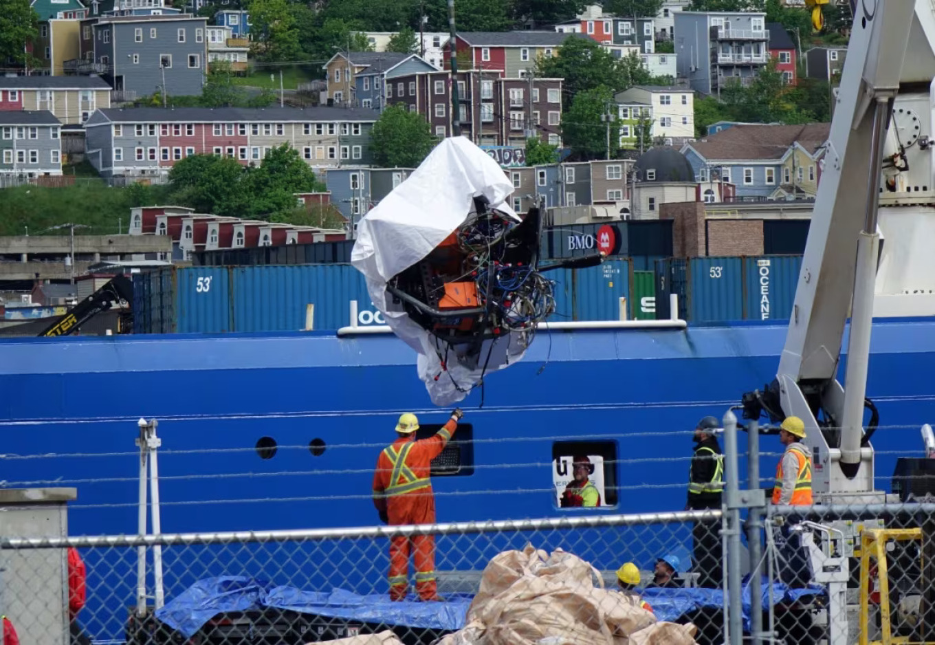 Σε πρώτη φάση, τα συντρίμμια του Titan μεταφέρθηκαν σε μια προβλήτα της Καναδικής Ακτοφυλακής στο «St. John’s», στο Νιουφάουντλαντ.