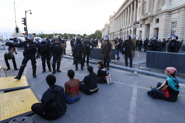 «Zyed, Bouna, Nahel και Adama. Δεν ξεχνάμε, δεν συγχωρούμε». Παρά τις πολλές προειδοποιήσεις, οι διαδηλωτές δεν διαλύθηκαν στην Place de la Concorde. Ένας άνδρας ανταπάντησε «θα χρησιμοποιήσουμε τα δικαιώματά μας» στον ένστολο των CRS που φώναξε στο μεγάφωνο του, «θα χρησιμοποιήσουμε βία».
