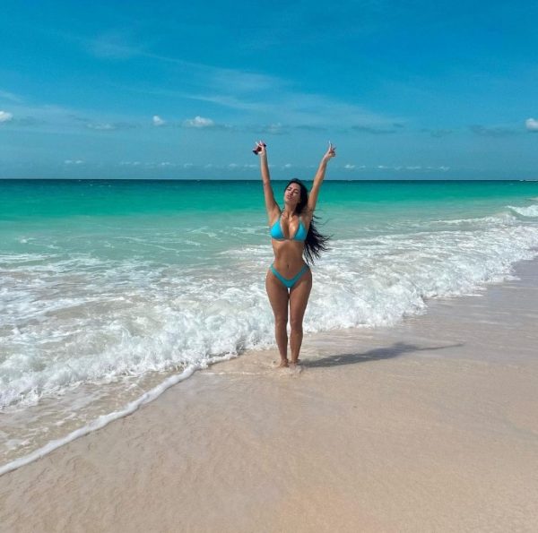 Όπως συνέβη και στο τελευταίο της ποστ. Σε αυτό η διάσημη τηλεπερσόνα ποζάρει σε μία παραλία φορώντας ένα τιρκουάζ μπικίνι, που αναδεικνύει την καλλίγραμμη σιλουέτα της.