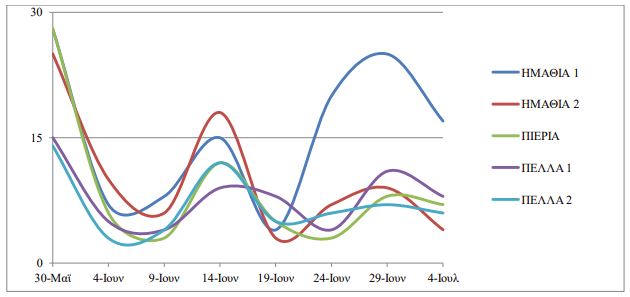 Από τα δεδομένα των παγίδων στις περιοχές της Ημαθίας, της Πέλλας και της Πιερίας η πτήση του εντόμου καρπόκαψα στη μηλιά εμφανίζει σημαντική αύξηση των συλλήψεων στις περισσότερες περιοχές, το χρονικό διάστημα 28 Ιουνίου – 1 Ιουλίου.