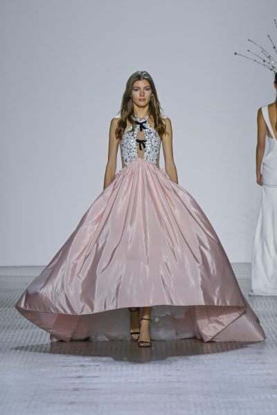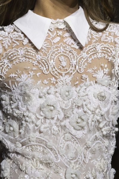 Τα εξαίσια φορέματα αποκαλύπτουν την τέχνη του κεντήματος, καθώς κάθε βελονιά είναι απόδειξη της αφοσίωσης και της εμπειρίας των εξειδικευμένων τεχνιτών. Τα περίτεχνα χειροποίητα κεντήματα αποτελούν σήμα κατατεθέν για τη σχεδιάστρια.