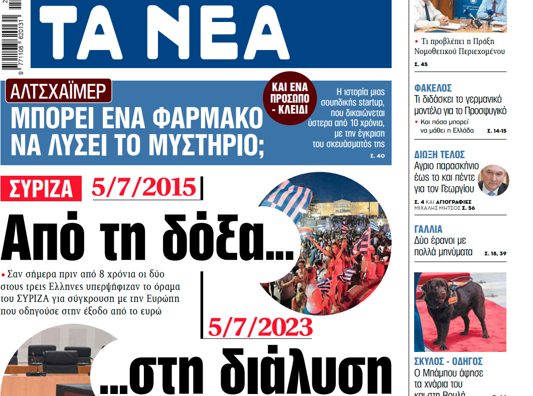 5/7/2015 • Σαν σήμερα πριν από 8 χρόνια οι δύο στους τρεις Ελληνες υπερψήφιζαν το όραμα του ΣΥΡΙΖΑ - 5/7/2023 • Σήμερα 8 στους 10 γύρισαν την πλάτη στο κόμμα της αξιωματικής αντιπολίτευσης.