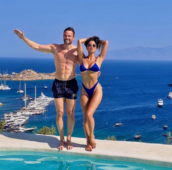 Το ερωτευμένο ζευγάρι ποζάρει με φόντο το απέραντο γαλάζιο και δείχνει να απολαμβάνει τον ήλιο και τη θάλασσα. Μάλιστα, γιόρτασε και την 4η Ιουλίου, Ημέρα της Ανεξαρτησίας, στην Ελλάδα, με ένα κλιπ στο Instagram με τους σχεδόν 6 εκατομμύρια ακολούθους, όπου κάνει βουτιές σε μία πισίνα.