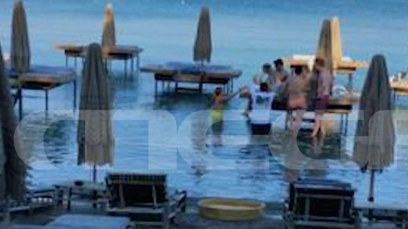 Σερβιτόροι κολυμβητές, δίσκοι γεμάτοι φαγητά και ποτά για τους «εκλεκτούς πελάτες» και οι τιμές για γερά πορτοφόλια. Η παράνομη πλωτή ξαπλώστρα χρεώνεται 150 ευρώ.