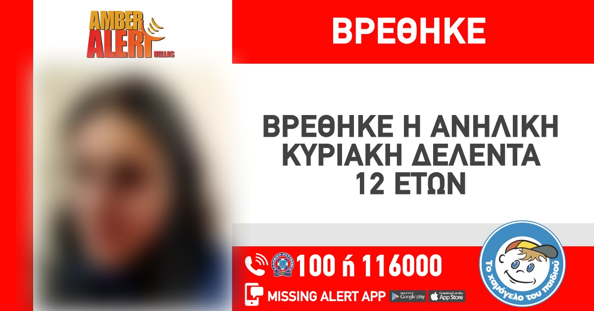 Λίγες ώρες κράτησε η αγωνία της οικογένειας Δελέντα για την εξαφάνιση της 12χρονης Κυριακής, το βράδυ της Τετάρτης.