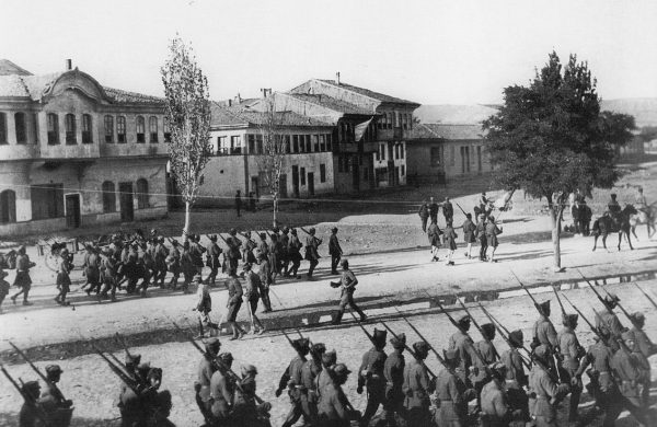 Έλληνες πεζικάριοι παρελαύνουν στο Εσκί Σεχίρ (πηγή: Εθνικό Ιστορικό Μουσείο)