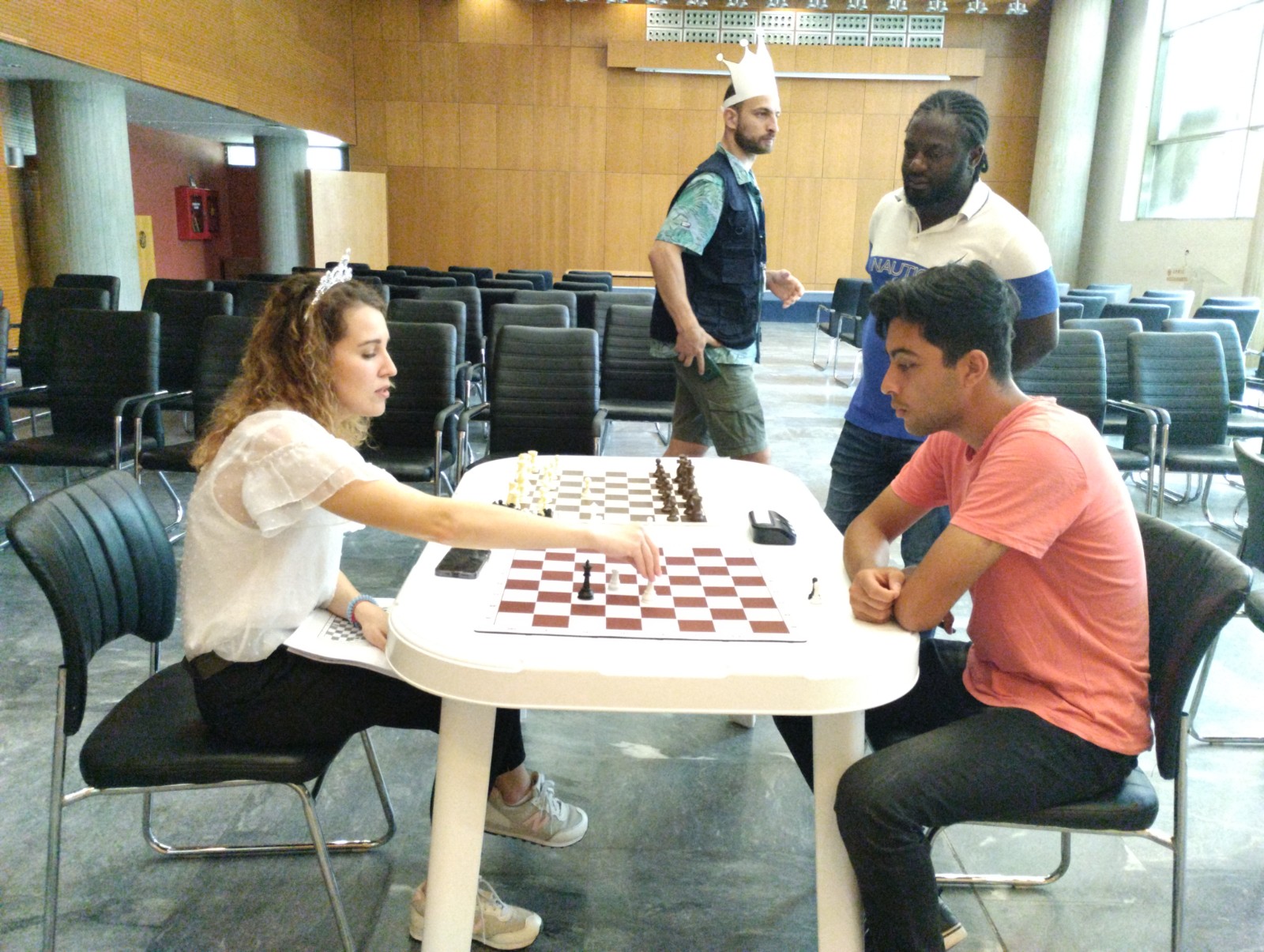 Όπως είπε, την ώρα που υποδέχτηκε τους δημοσιογράφους με ένα φαρδύ χαμόγελο, δε θα είχε στη διάθεσή της πολύ χρόνο για τη συνέντευξη, γιατί το μάθημα σκακιού στα προσφυγόπουλα, στο πλαίσιο των εκδηλώσεων της MKO «Solidarity Now», με αφορμή την Παγκόσμια Ημέρα Προσφύγων, είχε ήδη ξεκινήσει.