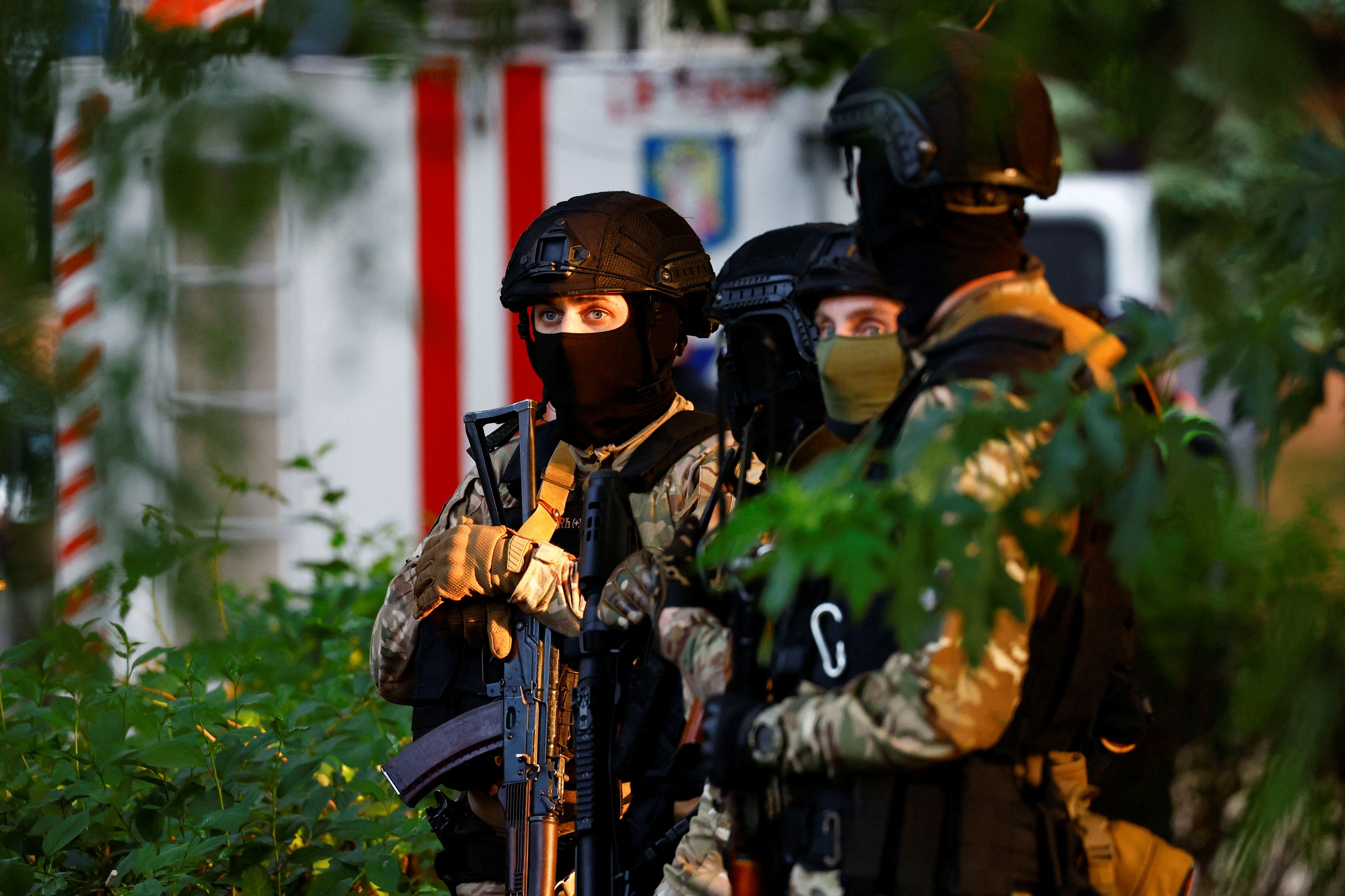 Καθώς οι αστυνομικοί πυροβόλησαν στον αέρα ώστε να τον εμποδίσουν να φύγει από το κτίριο, ο άνδρας οχυρώθηκε μέσα σε ένα άλλο δωμάτιο, είπε ο Κλιμένκο. Ο άνδρας αρνήθηκε να διαπραγματευτεί με τους αστυνομικούς και πέταξε άλλον έναν μηχανισμό προς τους δύο αστυνομικούς οι οποίοι τραυματίστηκαν.