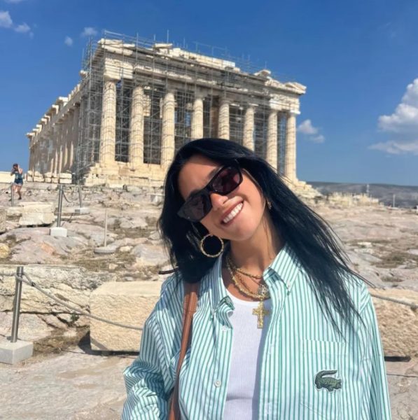 Με ένα casual outfit και χαλαρή διάθεση η τραγουδίστρια πόζαρε στον φωτογραφικό φακό, με φόντο τον Παρθενώνα και μοιράστηκε τα στιγμιότυπα με τους 88,4 εκατομμύρια ακολούθους της, που έσπευσαν να της κάνουν like.