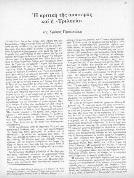 *Αποσπάσματα από ένα πολύ ενδιαφέρον κείμενο που είχε συγγράψει το Δεκέμβριο του 1979 η λογοτέχνιδα και μεταφράστρια Χρύσα Προκοπάκη υπό τον τίτλο Η κριτική της αριστεράς και η «Τριλογία».