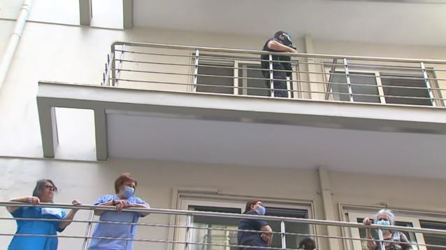 Μετά την εκκένωση του κτηρίου, πολλοί ασθενείς, με μέρος του προσωπικού, βρίσκονται στο πεζοδρόμιο επί της οδού Μητροπόλεως, ενώ κάποιοι γιατροί και νοσηλευτές έχουν βγει στα μπαλκόνια της κλινικής.