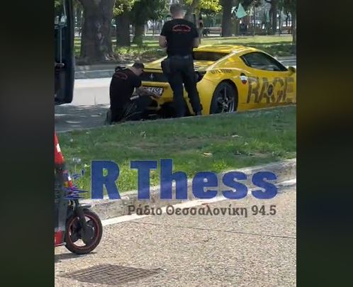 Η κίτρινη Ferrari ήταν παρκαρισμένη παράνομα στην παραλιακή της Θεσσαλονίκης, εμποδίζοντας τα τουριστικά λεωφορεία να σταθμεύσουν, με αποτέλεσμα οι δημοτικές αρχές να σπεύσουν επιτόπου για να κόψουν κλήση και να αφαιρέσουν τις πινακίδες από το όχημα.