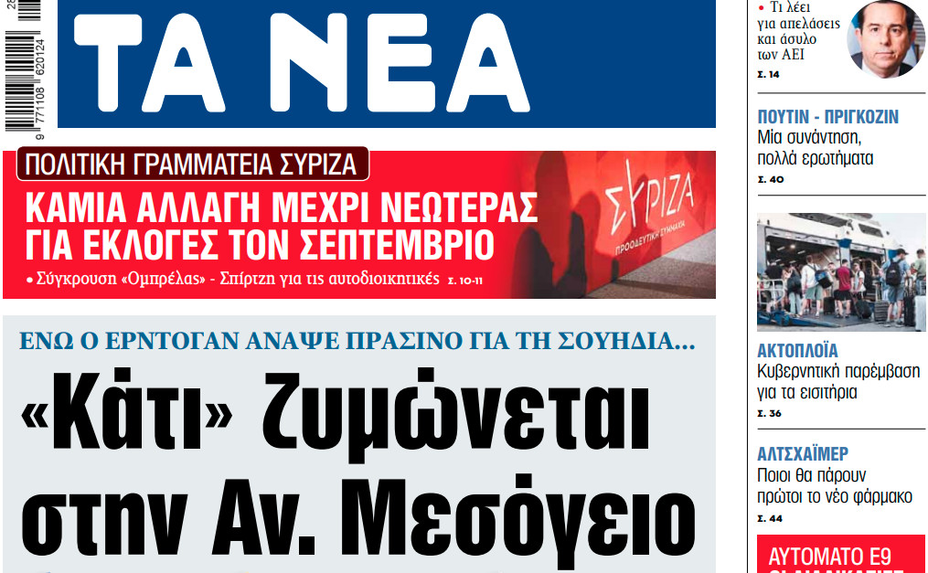 Στα «ΝΕΑ» της Τρίτης: «Κάτι» ζυμώνεται στην Αν. Μεσόγειο